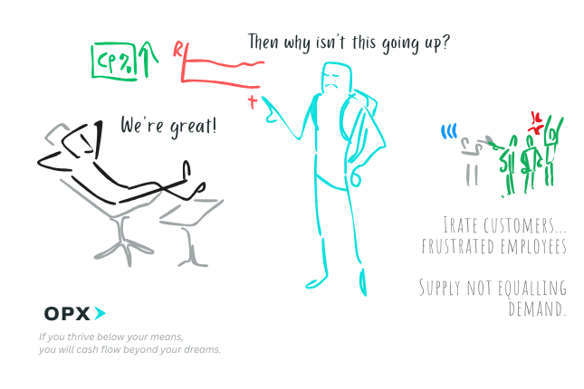 - A persistently high CP% with stagnant revenue numbers means my company is coasting and that there is a possibility that customers and employees are frustrated.The demand for my product is high and my supply is limited, meaning there are some customers who aren’t getting what they want. And there are some employees who have to dole out rejections. Any further in this situation and the company’s cash flow situation could soon reverse as customers decide to go elsewhere and… Read more: A persistently high CP% with stagnant revenue numbers means my company is coasting and that there is a possibility that customers and employees are frustrated.